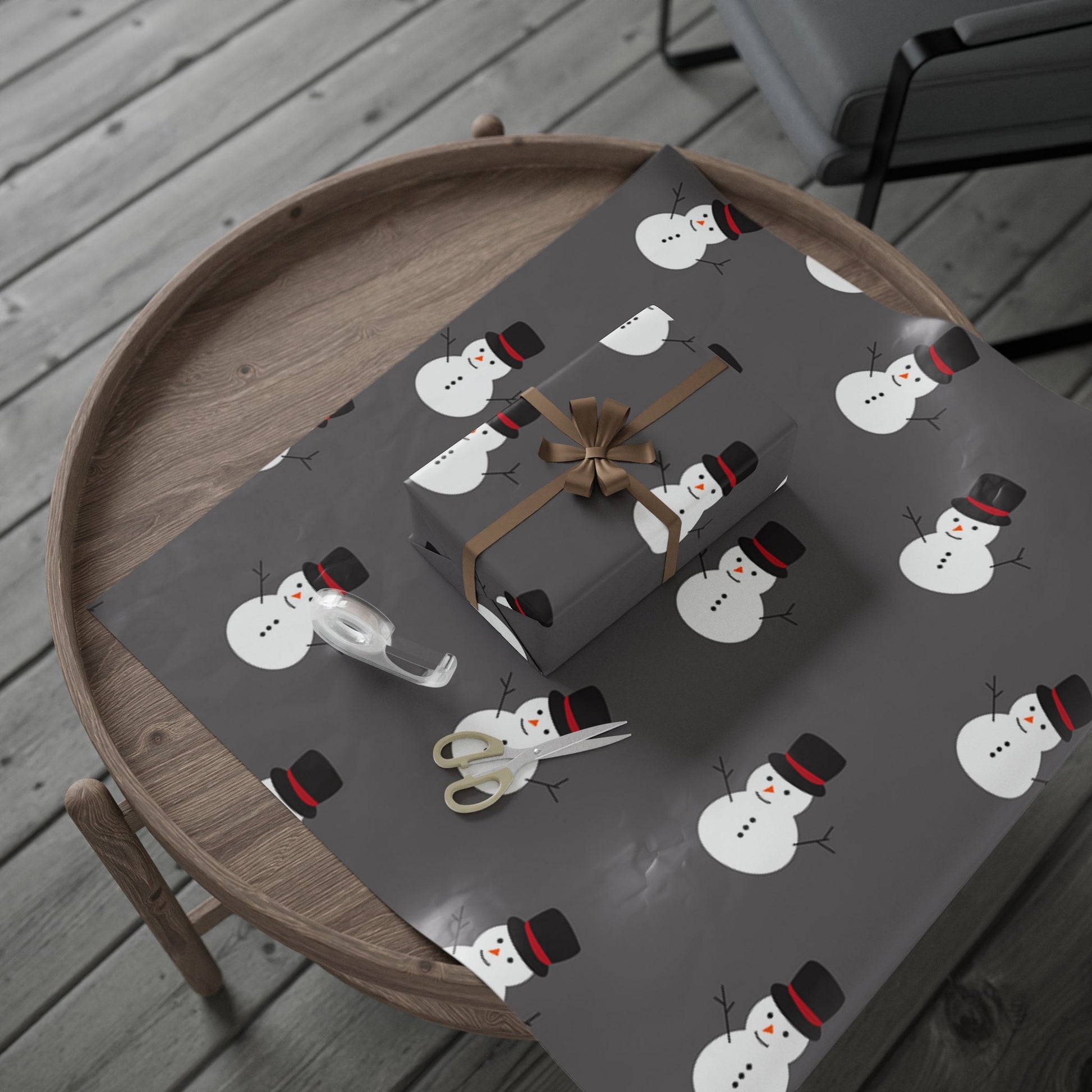 Snowman Pattern Wrapping Paper – Festive Grey Holiday Gift Wrap